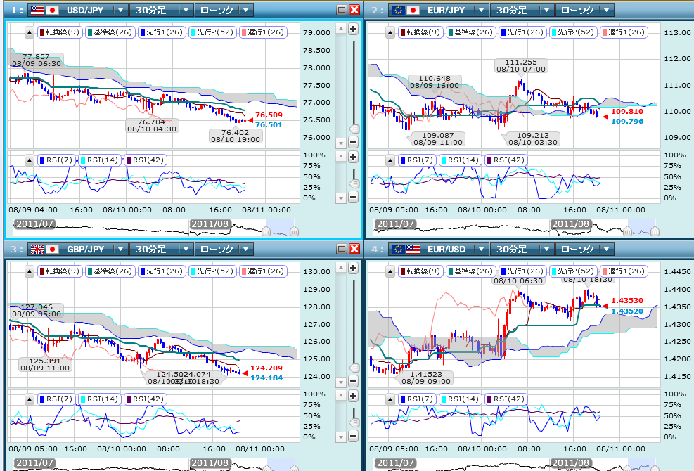 ドル円はお盆休み前の売りオーダーにより78円台後半からは売りが厚い