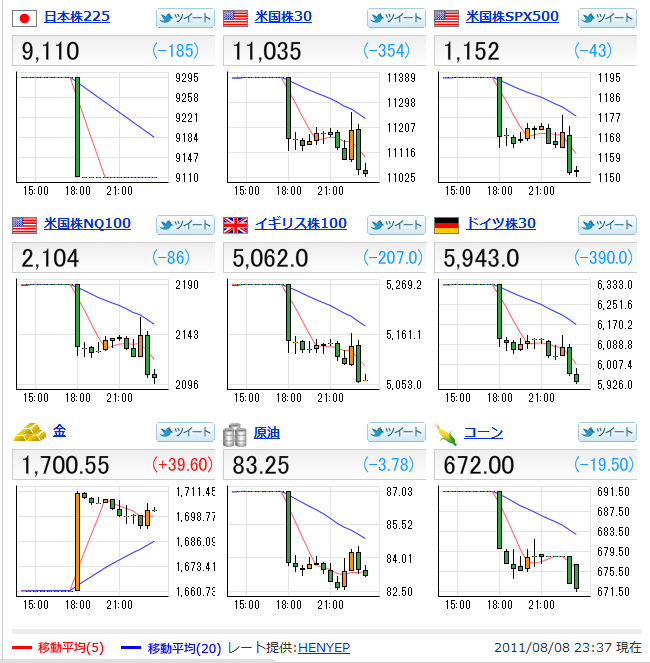S&Pがファニーメイとフレディマックの格付けを「AAA」から「AA+」に格下げ=その影響かダウは大きく下げる。