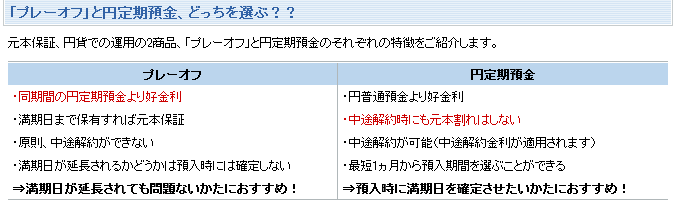 円定期預金とプレーオフの金利を比べるとプレーオフの方が有利です。